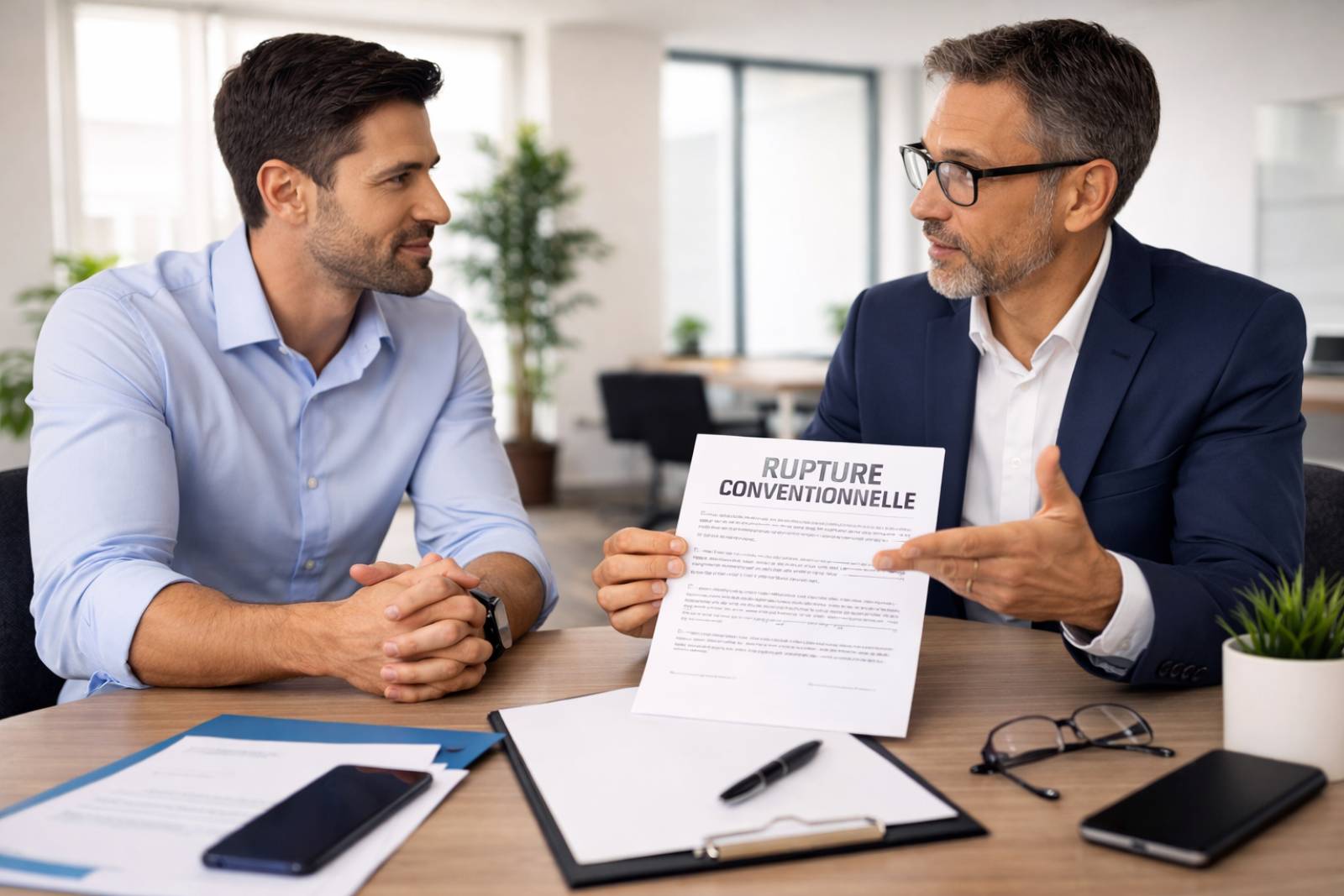 La procédure commence obligatoirement par au moins un entretien entre l’employeur et le salarié. Contrairement à l’entretien préalable au licenciement, aucune convocation formelle par écrit n’est imposée par la loi ; la convocation peut être orale ou écrite, selon ce que les parties décident. Il est toutefois fortement recommandé d’en conserver une trace écrite (email, courrier remis en main propre avec décharge).